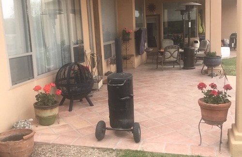 A true sanctuary. In ground heated pool looks out at the pristine Chihuahua Desert and the breath taking granite spired Organ Mountains of Southern NM all of which are unobstructed. The home is beautifully appointed. There is a baby grand piano in the great room. There are are 2 bikes in the garage—a hybrid road/mountain and fat tire cruiser. There are no street lamps or light pollution to spoil the dark starry NM nights. The desert and mountain hiking is fabulous. You can see forever in NM! We enjoy over 300 days of annual sunshine. There are great sunset views in front of the house and the Mesilla Valley pecan orchards and farms. There is an easy mile loop hike behind the home that is fun and beautiful. The home has a spacious kitchen with fantastic views of the outdoors. The people of Las Cruces are friendly, kind and caring folks. Así es Nuevo México!