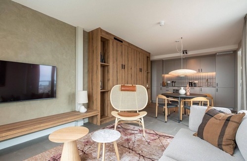 If you're seeking abundant space and stunning views, this apartment will undoubtedly exceed your expectations. Spread across the 5th and 6th floors, it can comfortably accommodate up to 4 guests in two generous bedrooms, all while offering breathtaking panoramic views of the surrounding area. With its exceptional level of comfort, this apartment is perfect for both short and extended stays. As you step inside, you’ll immediately feel the warm and inviting ambiance that has been carefully integrated into the design. This atmosphere is a perfect blend of natural colors, materials, and contemporary technology. The apartment boasts a fully equipped kitchen, a spacious dining area, a cozy sofa, and a large SMART TV with Chromecast. Both bedrooms are well-sized, featuring comfortable beds, SMART TVs with Chromecast, desks, and ample closet space. The large bathroom offers a shower, double sinks with drawers, and a heated mirror. Additionally, there is a separate toilet and a private laundry room with a washing machine and dryer. The apartment also includes a spacious balcony with fantastic views. Notably, the electricity and heat used during your stay are predominantly powered by solar panels, showcasing BizStay Walden as a sustainable and environmentally friendly building.