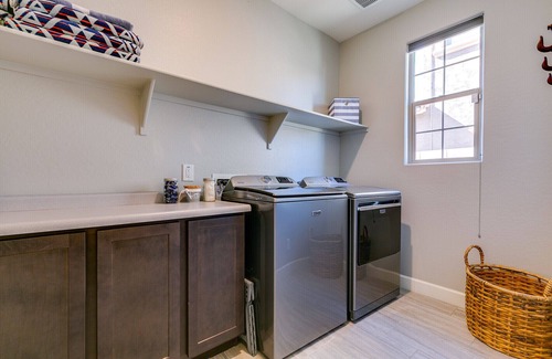 You will love the spacious and open floor plan of this newly furnished single story 2700 sq ft house. Location is key - Estrella Mountain Ranch in Goodyear is the perfect place to get away from it all while still only being 15-20 minutes from whatever you want to do. This house is perfect for friends or family looking to stay together as it can sleep up to 10 people comfortably! Enjoy outdoor activities such as hiking, biking, or walking around the 2 lakes - or stay home and enjoy your private pool and backyard!