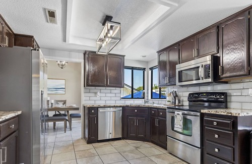 4 beds 3 full baths with a pool! Spacious Home with a big kitchen perfect for small family gatherings. Quiet neighborhood for a relaxing stay located within walking distance to Stanislaus State University. Book your staycation today!