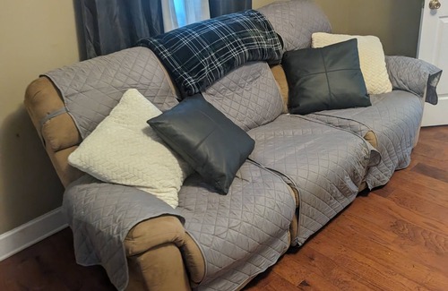 There are 2 full bathrooms amd one half-bath in this home, each stocked with all the essentials you need for the duration of your stay. The mater bedroom is attached to one full bath, which features a walk-in shower. The upstairs full bath offers a bathtub & shower. The half-bath is conveniently located downstairsand easily accessible from the main living area.