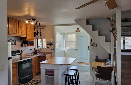 Welcome to our lovely small 2 story A frame cabin. The famous San Juan River is steps away ready for fishing. Just minutes away from the Navajo Dam Lake Marina. The house is clean, fully equipped and ready for your stay! Cabin comfortably sleeps 3 guests, more are welcome! Two lawns available for camping. Large area for parking. One 30 and 50 volt amp plug in for campers. The panoramic nature view and relaxing visit will make you want to come back again guaranteed! It is the perfect getaway!