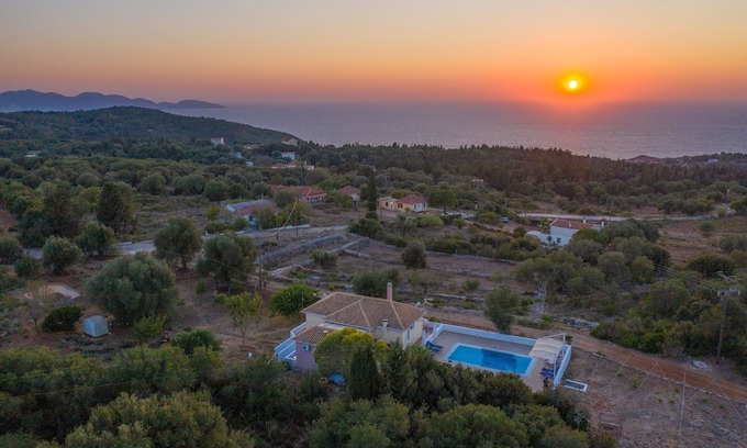 The villa stands in a very quiet environment, surrounded by an area of olive trees with a couple of very friendly, local neighbours. The villa is west facing so it is possible to see the most beautiful sunsets over a sea view.