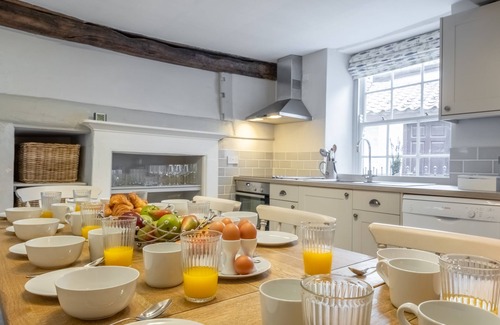 St Michael's Cottage is a truly stunning 16th century flint and brick built former merchant's house set over four floors. Full of character, it has a lookout tower at the top of the house on the fourth floor which affords beautiful views over East Fleet creek, the harbour, the marshes and sea beyond. With the telescope/binoculars supplied, this is a perfect space for daytime vistas to appreciate the superb coastal views and equally impressive for night-time stargazing. This beautiful cottage decorated in a neutral palette is set on a no through road right in the heart of Wells-next-the-Sea, on one of the narrow lanes that leads down to the quay, and comes with off street parking for one car and its own sunny south-facing courtyard garden, with a barbecue seating area.