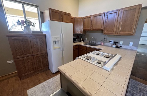 Located on our ranch where the night sky is perfect for stargazing! Enjoy the private, fenced backyard with amazing views. There is lots of space to roam in our 100 acre ranch. We have horses, cows, farm dogs, cats on the ranch. This house is pet friendly.