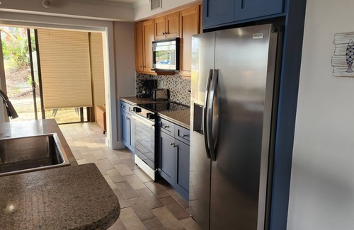 Comes with everything you need - dishes, pots, pans, silverware, wi-fi, laundry room, 3 flat screen TVs, linens and towels (bath and beach), amazing bay views, and the beach just across the street.