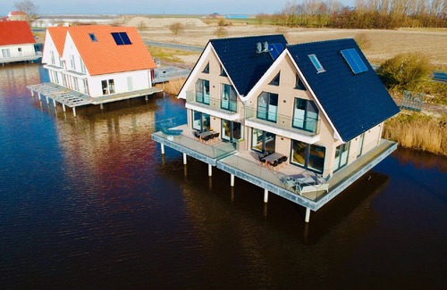 Enjoy the very special atmosphere of living on the water! This stilt house is one of only a few water houses and is in a prime location between the Harlesiel marina and the Friedrichsschleuse, in close proximity to the North Sea and the beach. It is built entirely on piles in the water and is only connected to the waterfront by its own jetty. Enjoy the very special atmosphere and the wonderful view of the inland port or lock. Relaxation from everyday life is effortless here!