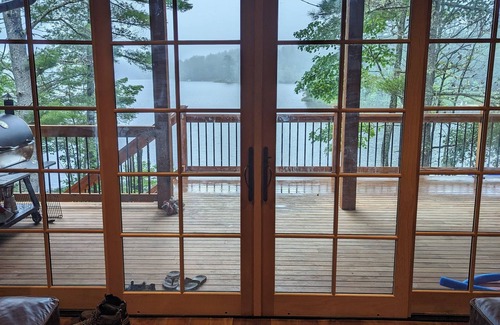 Direct waterfront on Belleau Lake in Wakefield, NH, you will be close to Wolfeboro and Lake Winnipesaukee as well as many Maine attractions and the White Mountains. Storybook Pines is truly a multi-generational four season retreat. Built and decorated to bring to mind images of a storybook cottage, you will find enchanting details around every corner. Large open gathering places, a library filled with books, seven cozy bedrooms decorated with patchwork quilts and beautiful artwork.