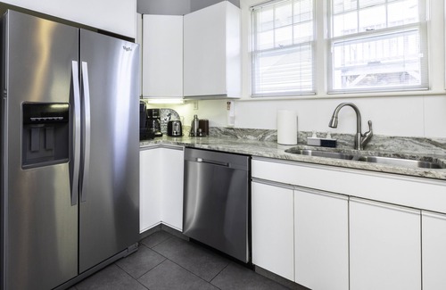 Originally built in 1935, this home has been professionally preserved to retain the original Craftsman-style architecture and elegant 1930s character, while simultaneously upgrading it with the most modern amenities. Natural light abounds throughout the unit. Luxury furnishings include Italian leather sofas, memory foam mattresses, and stainless steel appliances in the kitchen. A 50” flat-screen TV with Verizon Fios service and free Wi-Fi ensure even rainy vacation days will be fun for your entire group. The fully furnished kitchen allows home chefs to create the seafood meals of their dreams.