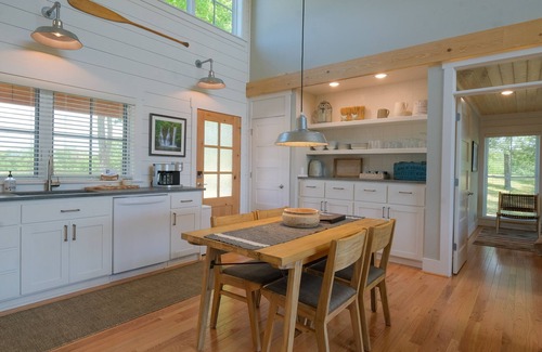 Completed in June 2022, this comfortable home has plenty of room for your family or two couples. Stunning architecture and tasteful furnishings make the house memorable in its own right. High dormer windows in the two-story living area and large windows in every room let you see forest and sky all around. The interior is sunny and uplifting ... like the great outdoors. Flanking the great room are two spacious bedroom suites. Separate bathrooms have large, glass, walk-in showers.