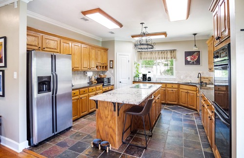 The fully equipped kitchen creates an ideal spot to cook a full-course meal