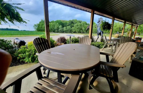 Stunning, unique, and secluded barndominium Walking trails, wildlife, & quiet is located in New Lisbon. Stunning, unique, and secluded barndominium Walking trails, wildlife, & quiet provides accommodation, featuring Bedding/Linens, Wellness Facilities, Fireplace/Heating, among other amenities. This House features Bedding/Linens, Wellness Facilities, Fireplace/Heating, to make your stay a comfortable one.