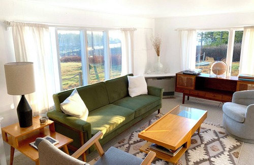 This stylish, 1940s former schoolhouse with harbor views is one of just a few cottages located along Acadia's Schoodic Loop. Guests bike or hike in the park by stepping out the door! Enjoy this crowd-free part of Acadia — or drive 7 min to the ferry for a boat ride to Bar Harbor. Alternatively, head up the coast for more hiking, picturesque fishing villages, quirky shops and quintessential Maine culture. At home, enjoy books, art and a curated record collection; buy fresh lobster from the dock.