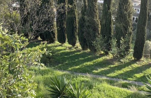 Once a historical Farmhouse with an olive mill - now a beautifully located summer residence overlooking the coast. Large gardens with swimming pool, andalusian courtyard, private tennis court. Proximity to the golf-courses of the costa del golf and to the beautiful village of Benalmadena. Possibility to pick oranges, lemon and figs directly in the gardens. Ideal for families with children. Large grounds (5 ha) with spectacular old olive trees. 5 min. drive to the next beaches. Can be reached by train plus 12 min walking distance.