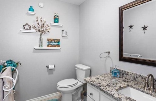 Relax with the whole family at this peaceful lake house on the waters of Lake Palestine. Sit on the boat dock and enjoy the sound of the water or jump right in for the full experience! Amazing views, peaceful sounds of the water, comfortable beds, 3 kayaks, swimming area, fishing, and more! Access to the boat dock is included for kayaking, swimming, and fishing, but boat slips are available for an additional fee.