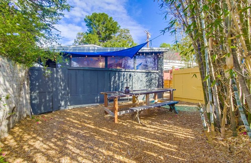 Studio with private yard for dogs, pullout couch, located about 1 mile to Carlsbad and Oceanside beaches. Walk to hundreds of restaurants and bars and train in 15 minutes. Warm, Clean, brand new interior with lots of natural light. Outdoor eating space with lush mature Bamboo trees. Walking distance to many restaurants, bars, village, parks, library. About a 5 minutes drive to Oceanside pier. Uber there for $3. Best, quiet location in a fantastic neighborhood Great place to relax for a week.