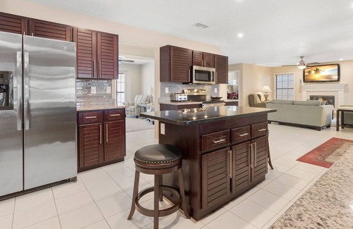 With three luxurious bedrooms and two-and-a-half bathrooms, Surfside Beach House offers spacious, ultra-comfortable quarters for a family or group of friends. And you'll be amazed by this home's luxury, which includes wood and tiled floors, sumptuous furnishings and accents, ceiling fans in every room, a huge, covered furnished lanai with pool, backyard patio with fire pit, fully equipped gourmet kitchen with island and breakfast bar, and elegant dining area. There's even a washer and dryer so you can save room in your luggage for souvenirs!