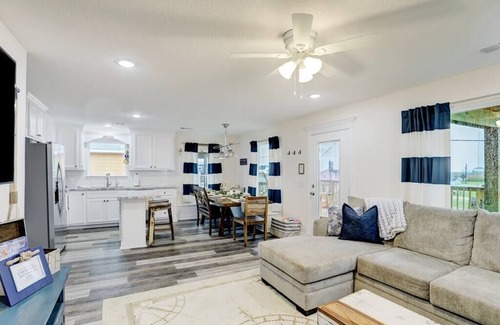 From the gleaming gourmet-ready kitchen to the marble shower, this rental presents a higher-end Gulf Coast retreat that’s just a short stroll to the sand and surf. (Check out our images to get a better sense of the distance!)