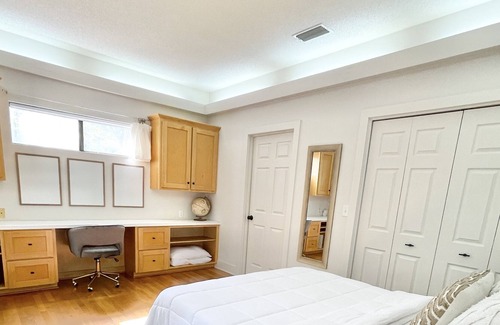 Welcome to Sweet Haven! This spacious and bright home w/ high ceilings & large rooms has everything you need for your stay! From luxurious hotel quality bedding to your morning coffee selection, we’ve got everything covered. The well appointed kitchen is big enough for everyone to gather. Be sure to enjoy some relaxation time in the lounge space in the sunroom. There’s an office area in one of the bedrooms w/ plenty of space for remote work. The primary bedroom has a large TV and en suite bath. **House will sleep 10 after March 4th. 1 King in Primary bedroom, 2 queens in bedroom 2 and Full over Full bunk bed in bedroom 3.
