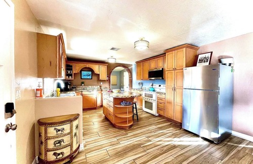 Very secluded end of street with forested nature hiking/biking trails! This home has everything you need to enjoy Sedona. Walk to Famous Cathedral Rock & Crescent Moon Ranch 0.5mi, Red Rock State Park, Chavez Creekside swimming. Upper Red Rock Loop road into tranquil neighborhood. PET FRIENDLY! Pet homes will almost always have some dog hair left behind no matter how diligently cleaned in between guests. Please be aware as your doggy will shed too. Fireplace is DECORATIVE only. Sorry!