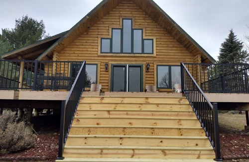 Accommodations: Chalet style log home, 2 main floor bedrooms, large loft sleeping area, ( cabin sleeps 6-8), 2 bath.