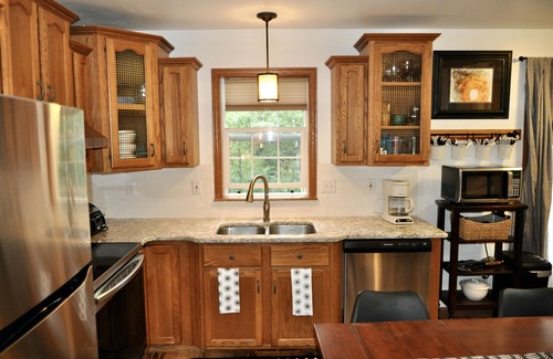 Come enjoy the peaceful nature at Autumn Lake in this 3 Bedroom, 2 bath two level cottage sleeps 11 (1 Queen bed, 3 Double beds, 1 twin, 1 twin daybed with 1 twin trundle bed). This cottage has hardwood floors throughout. High living room ceilings (decorated with pine) and large double patio doors with atrium windows that overlook Autumn Lake and open onto our attached deck. The view is just as stunning from the loft with the large atrium windows that look at Autumn Lake. This cottage has a lovely brook that runs along side of it as well as the lake in front of it. 55" smart tv (no live tv) & Wi-Fi. Large dining table for family fun. Fully furnished, full size appliances in kitchen with dishwasher. Attached deck overlooking Autumn Lake with table and chairs. Linens included with beds. Dishes & Flatware- Service for 11 & Basic Tools & Cookware, Microwave/ Toaster/ Coffee Maker (regular pot, not k cup). Ceiling fans in bedrooms. 4 AC units in the home to keep you cool in summer. Garbage Removal Included. This cottage 7 at 5 Autumn Lake Drive. Cottage 7 is our most secluded cottage. Please note this property is not on the main campus, but just across the brook and is situated above a two car garage (use of garage with owner permission) while you stay. Located just minutes from the world acclaimed salmon and steel-head fishing on the Salmon River, steps away from Autumn Lake for action filled bass and pan-fishing. Fish, Ski, snow shoe, bring your ATV or snowmobile-Out the Door on the C5 Trail/ Access to Oswego County ATV at the end of our driveway! Enjoy the amazing Tug Hill trail system while you visit us and ride. Make s'mores at your private fire pit. Cook out at our charcoal grill (bring your own charcoal and grill-ware) and gas grill. Walk down the gravel path to Autumn lake where there are several boats for guest use *no additional charge*. Life jackets on site, must be worn on boats. Dock and load the boats at your own private dock.