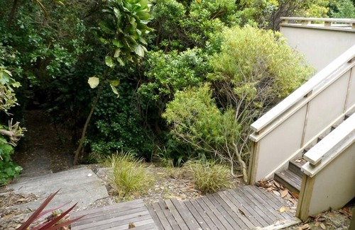 Tangahoe is a traditional Paekakariki bach, re-vitalised - in style and comfort - by Wellington architects Melling:Morse Ltd. A stone's throw from the beach, its generous living space extends onto elevated decks set amongst the tree tops. A serene double-bedroom hovers over a sheltered garden...(a couch/bed in the living area provides sleeping for 2). The bach is very sunny and warm but in a storm there is the comfort of a cosy fireplace.