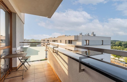 Tauron Arena Modern Apartment is a stylishly furnished apartment that features a living room with a sofa bed and a kitchenette, a bedroom with a comfortable double bed, a bathroom, and a spacious balcony where guests can relax and enjoy a morning coffee or an evening glass of wine. Guests have access to various practical amenities, including free WiFi, cable TV, a washing machine, an iron, a hairdryer, a refrigerator with a freezer, a dishwasher, an oven, a microwave, and kitchen utensils. Additionally, the apartment has air conditioning, providing exceptional comfort, especially during hot days. Guests also have access to a parking space in the underground garage.