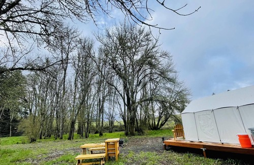 In the renowned wine country of the Willamette Valley, secluded in the shade of a small forest, unwind and relax in wine country glamping style in the Willamette Valley on a cut flower farm. A private and Peaceful slice where the wind whispers through the trees.