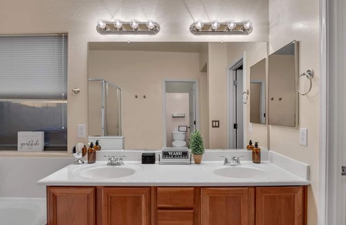 Your Chandler adventure begins at this delightful 3-bedroom house. With 1 king bed and 2 queen beds, this pleasant property offers a comfortable stay for guests. Enjoy the convenience of WiFi, iron, washing machine, heating, AC, and a hair dryer. The 2 bathrooms are equipped with a hair dryer, bathtub, and shower. Whether you're exploring the city or relaxing at home, this brilliant rental is the perfect base for your vacation. Feel free to reach out to us during your stay - we're happy to suggest local spots to check out.