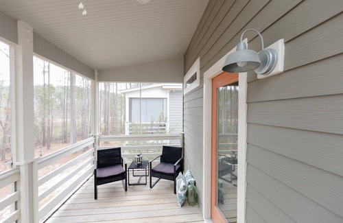 The 4 E's Cottage has everything you want in a smaller package . An open floor plan and high ceilings make 900 square feet feel spacious with one bedroom downstairs and a large bedroom in the open loft. The 280' of covered and screened porches are perfect for rocking, dining and enjoying your peaceful surroundings. This is one of our Outfitter Cottages near Mill Creek and the kayak center. Cool features throughout like reclaimed tobacco barn floors, granite, bead board ceilings and custom cabinetry make this cottage warm and inviting. Neighborhood and cottage amenities make it the perfect for adventure or just relaxing.