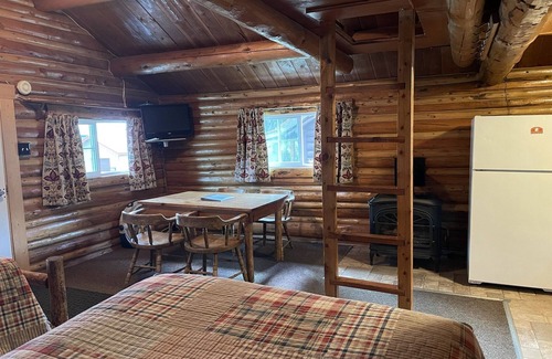This warm, homey log cabin has been completely refurbished and is exactly what many picture when planning a vacation to the heart of Yellowstone Country. Enjoy a spacious cabin with a gas fireplace, a full kitchen, and bathroom with a table and chairs. Downstairs in the main area are two full-size log beds, with a queen bed in the loft. Round out your day outside on the spacious deck, taking in the amazing, mountainous views.