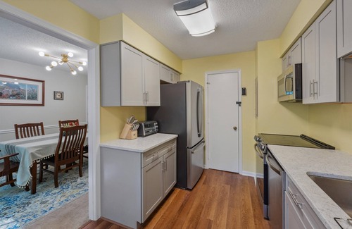 This 3BR 2.5 BA townhome with fenced yard, deck, outdoor eating and grill is the perfect stay for relocating families, patients of WakeMed or corporate customers here for work. High speed internet provided by AT&T Fiber optics. Samsung Smart TVs upstairs and down along with dining area for 6. Pets welcome. Clubhouse available for events up to 50 people.