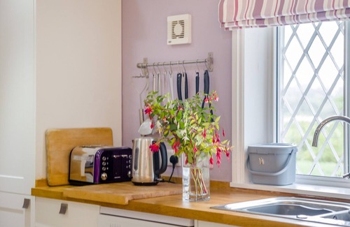 Inside, your holiday home is light and airy, bursting with country-cottage character. Step into the entrance lobby, where a staircase leads to the upper floor. On the ground level, you'll find a cosy lounge complete with a Smart TV and a crackling wood burner, perfect for relaxing evenings with loved ones while the dog snoozes at your feet. Adjacent is a well-equipped kitchen/diner with a dining table for sit-down meals and a breakfast bar on which to grab a quick bite. A convenient utility area completes the ground floor. Upstairs, two bright and breezy, dual-aspect bedrooms await, finished in neutral tones for a good night’s sleep in this quiet, rural setting. The master bedroom boasts a double bed, while the other offers a king-size bed which can be converted into two small singles on request. A contemporary family bathroom completes the interior of this home away from home, while guests can enjoy the convenience of private, off-road parking for two cars.