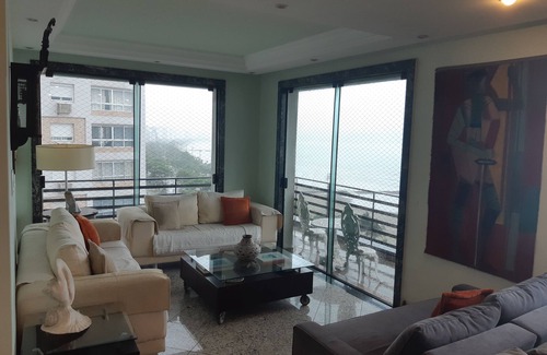 Apartment with 3 bedrooms, 1 suite + toilet, living room for 3 environments, L balcony with cinematic front view of the whole bay of Santos.