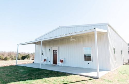 Resting on 100 acres of serene farmland, The Bethany House is the perfect place for a fun family gathering or a quick getaway. Escape into the countryside, away from the hustle and bustle, in this tucked away 4 bedroom/2 bath shop house. It is adjacent to Old Bethany Wedding Venue in the quaint town of Lorena and is only 5 minutes from I-35 and 20 minutes from downtown Waco and Baylor.