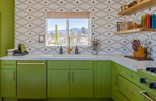 The Birdhouse was designed to be destination in and of itself—a private, secluded retreat a stone’s throw from Joshua Tree National Park. The home’s contemporary take on the funky style of the 60s and 70s blends seamlessly with the desert landscape. Lounge by the pool. Barbeque and play yard games. Experience the unparalleled artistry in the sunrises, sunsets and starry night skies sitting by the firepit. Downtown Joshua Tree is 15 min away, but you will look forward to coming home!