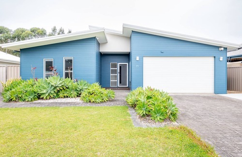 Welcome to “The Blue House”. This beautiful 3 bedroom/2 Bathroom home is light and airy and the perfect getaway for your relaxing beach holiday. Located only a 550 metre walk to Corindi Beach and local amenities such as the Skate Park, Corindi Tennis Courts, General Store and Post Office. The large fenced yard is great for the kids to run around in while the parents sit and relax on the undercover balcony or while away the days in the hammock. Convenience of a second bathroom. A pathway from the backyard for easy beach access.