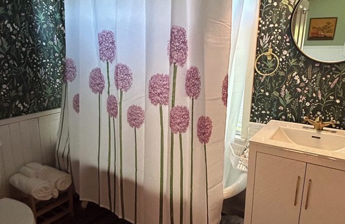 The bedroom boasts a double bed, desk, & closet. The living room has original hardwood floors, pullout sofa bed and a defined workspace. The bathroom has an original cast iron clawfoot tub & rain shower. Soaps and shampoos are included for use during your stay, as is breakfast.