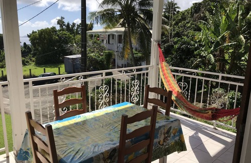 Studio for up to 4 people. With a large bed 160 cm and a mezzanine with bed 140 cm. A bathroom, a kitchen and a terrace with a view of the archipelago of saintes. The stairs to the mezzanine is a little steep. He aut that children face attention.