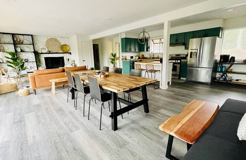 Indulge in our Scandinavian-inspired farmhouse getaway, nestled in the scenic city of Redding. Our space welcomes you into an open layout living room with a fully equipped kitchen, 3 bedroom and 2.5 bathroom space of luxurious comfort. The outdoors boasts of a tropical charm with its palm-laden swimming pool, hot tub, wood-burning BBQ, manicured backyard, and a sunlit wooden deck. The gorgeous Whiskeytown lake is a quick 10-minute drive from home. You'll have the entire place to yourself