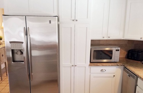 The kitchen is fully equipped with a dishwasher, a Wolf gas range, a deep gourmet sink, and a refrigerator/freezer. The granite counter provides space for bar stools and is great for informal gatherings. Cookware, dinnerware, silverware and utensils are furnished.