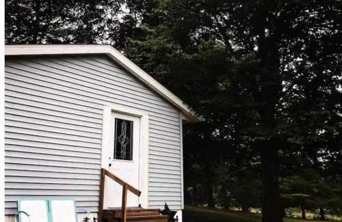 Looking for a getaway or a place to stay near Mad River Mountain, Marmon Valley, Ohio Caverns and the Piatt Castles, look no further. Peaceful one room cabin off the beaten path. Queen size bed, pull out couch and blow up air mattress. Smart Tv with Disney, Netflix, and Prime Video. Coffee bar and mini fridge. Enjoy a campfire on the brand fire pit or cook on the outdoor charcoal grill. Access to swings, trampoline and slide for kids.