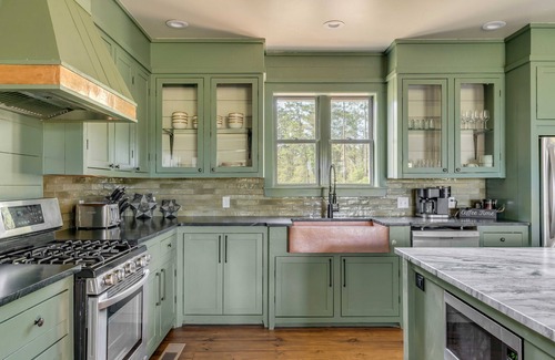 Rustic retreat with huge soaring ceilings lined with wood and exposed beams, a large gas fireplace in the living room, and an upstairs bedroom overlooking it through barn doors that close for privacy. This renovated farmhouse is set on the 515 acre Eden at Gracefield event venue and is one of a kind! Features include a huge living room, barn doors throughout and a wonderful kitchen with gas range and copper farm sink. ***Please note this is an elevated home - consider this if you have guests who have difficulty navigating stairs before booking.**