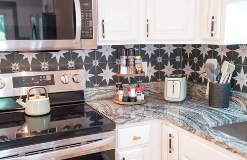 This home isn’t just beautifully decorated—it’s a labor of love. From high end wallpaper and hand-built furniture to curated local art and playful accents, we poured our hearts into every detail. Whether you're curling up with a book, cooking dinner together, or relaxing by the fireplace, you'll feel the warmth and joy that inspired every design choice.