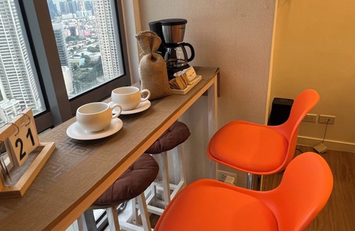 Step into a hotel-quality experience at an unbeatable price! Our thoughtfully designed unit offers the perfect blend of modern comfort and elegant style, complete with brand-new, high-quality furniture and kitchenware. Wake up to stunning views of Rockwell and the Pasig River, all just minutes away from the city's best destinations. Experience the best of both worlds with a stay that offers private comfort and FREE access to Novotel Suites Manila's premium hotel amenities.