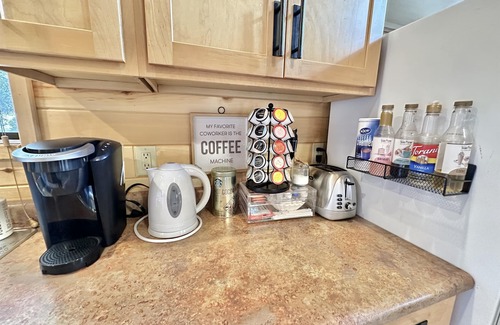 Kitchen: Fully equipped, cooking basics, spices, dish-ware & flatware, knife set, toaster, drip coffee maker, Keurig coffee maker