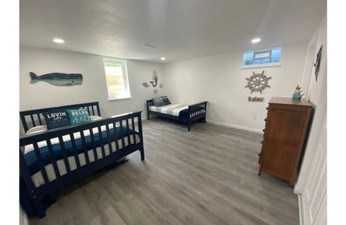 Basement apartment is completely new including fixtures and furniture. The Lake House includes 2 bedrooms and 1 bath. Is fully furnished and includes access to everything you may need from pots and pans to bedding, towels, and toiletries. I try to keep the kitchen stocked with coffee, seasoning, and some special treats. You are welcome to enjoy the shared back yard and even ask to borrow a bike or two to take a ride through the attached bike paths.