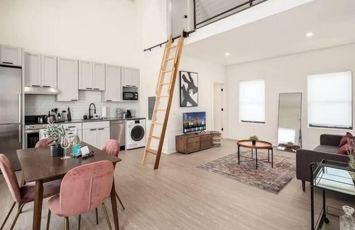 The Loft welcomes you with an aura of modern elegance. Cozy living space flows into an enchanting dining nook, while a fully-equipped kitchen beckons culinary creativity. Need to stay productive? A dedicated workspace awaits.