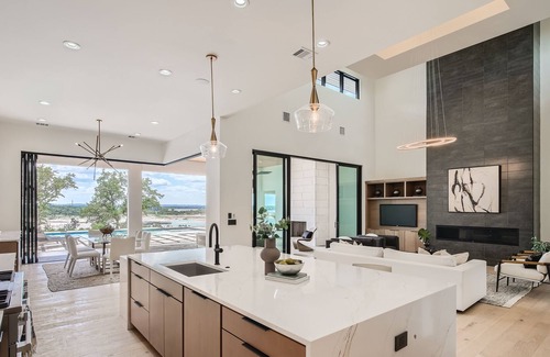 Please note that this property is undergoing a remodel, and the furniture and decor in the home may differ from what is shown in the images.Luxury, spacious design, and top-of-the-line amenities await your group at The Oracle, a breathtaking group retreat in an affluent neighborhood just an hour outside Downtown Austin. Valued at over $5.4 million, this spacious escape offers a one-of-a-kind experience with a private pool, beautiful outdoor living spaces, and five bedrooms.Nestled along the Colorado River, The Oracle greets you with an open layout, airy feel, and sunny living spaces. Sleek touches can be found throughout, while large sliding doors connect the interior common area to the covered patio, offering unbeatable indoor/outdoor living. The fully-equipped kitchen features a gas range and an oversized freezer/fridge to keep everyone's favorites stocked. You’ll also find a yoga room with large windows looking toward the river.Six bedrooms give everyone a space to call their own, while the backyard houses your private swimming pool, perfect for staying cool in the Texas heat.Get ready for a group retreat like no other. Luxury design, polished finishes, tons of space, and A+ amenities and entertainment are waiting at The Oracle.AvantStay provides an upscale experience with services that elevate your stay and save time so you can enjoy every moment. Guests have access to a 24/7 support team and a tech-enabled concierge to book services, such as fridge stocking, mid-stay cleanings, and private chefs. For anything you need (or never knew you needed), we're at your service!There are so many reasons to love Austin and its incredible barbecue is just one. The live music capital of the world, Austin has a thriving art scene and a party culture to match. Its crown jewel, Lake Travis, is lined with lively bars, restaurants, golf, and parks. Spend your days on the lake's crystal clear waters, bar hopping on Sixth Street, and shopping down South Congress Ave. Locals and visitors love to "keep Austin weird," which is reason enough to travel to this quirky city.Local Attractions: Zilker Park, Franklin's BBQ, South Congress Street, Quack's 43rd Street Bakery, Texas Capitol, Lake Travis, Austin Beerworks, Rainey StreetHome Truths:- Please note that the lake level varies depending on the season. Please reach out for more information.- Unfortunately, pets are not allowed in this home. If undisclosed pets are brought into the home without AvantStay's approval there is a fine of $500 per pet.- Pool heat is available for an additional fee, but must be requested before your stay.- There is a sleeper sofa in the office area for additional sleeping arrangements.Parking Details:- The driveway accommodates 3 cars.- The garage accommodates 3 cars.---The room configurations are as follows:Primary Bedroom / King bedBedroom 2 / King bedBedroom 3 / King bedBedroom 4 / King bedBedroom 5 / King bed Office / Sleeper sofa---Accidental Damage Protection: A non-refundable accidental damage protection plan has been included in the price of your reservation. Under this plan, you will not be held responsible to pay for accidental damage or loss to the rental property resulting from you or others in your party up to $2000. This plan does not cover intentional acts of a guest, gross negligence, or willful and wanton conduct, and/or damages caused by pets. This plan is not available for reservations 28 days or longer or reservations that require a security deposit.This is a smoke-free property. Violation of the no-smoking policy will result in forfeiture of the security deposit, a $300 smoking fee, and liability for any fire or property damage costs.As part of our commitment to being good neighbors, occupancy limits and quiet hours (9pm-8am) are strictly enforced. No speakers or sound systems will be provided for use in our properties. Violation of any noise ordinances will be subject to fines that can reach up to $10,000 per violation.Events or parties are not allowed without prior written approval and an additional fee. Any unauthorized parties or events will be shut down and a fine will be assessed. Please inquire for more information about our event policies and fees.IDs will be requested for verification after booking. All bookings over 30 days require a security deposit.We report and prosecute all Credit Card Fraud.